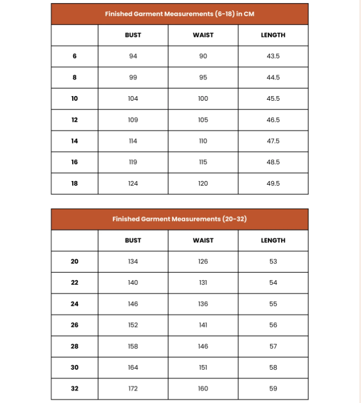 - Size group 6-18: 1.7m 140cm wide fabric and 0.5m contrast from inner yoke